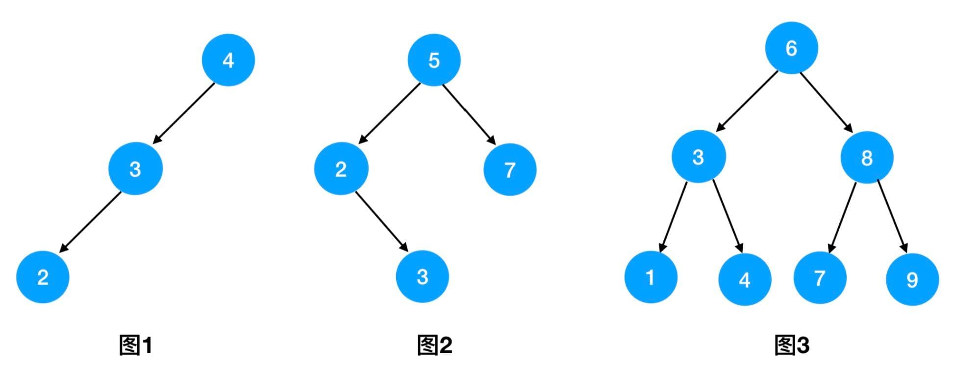 从这个定义我们可以看出,二叉搜索树强调的是 数据域的有序性 。也就是说,二叉搜索树上的每一棵子树,都应该满足 左孩子 <= 根结点 <= 右孩子 这样的大小关系。下图我给出了几个二叉搜索树的示例: