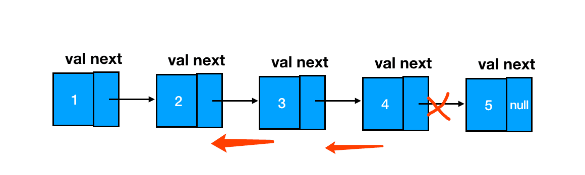 咱们从第一个结点开始,每个结点都给它进行一次 next 指针的反转。到最后一个结点时,整个链表就已经被我们彻底反转掉了。